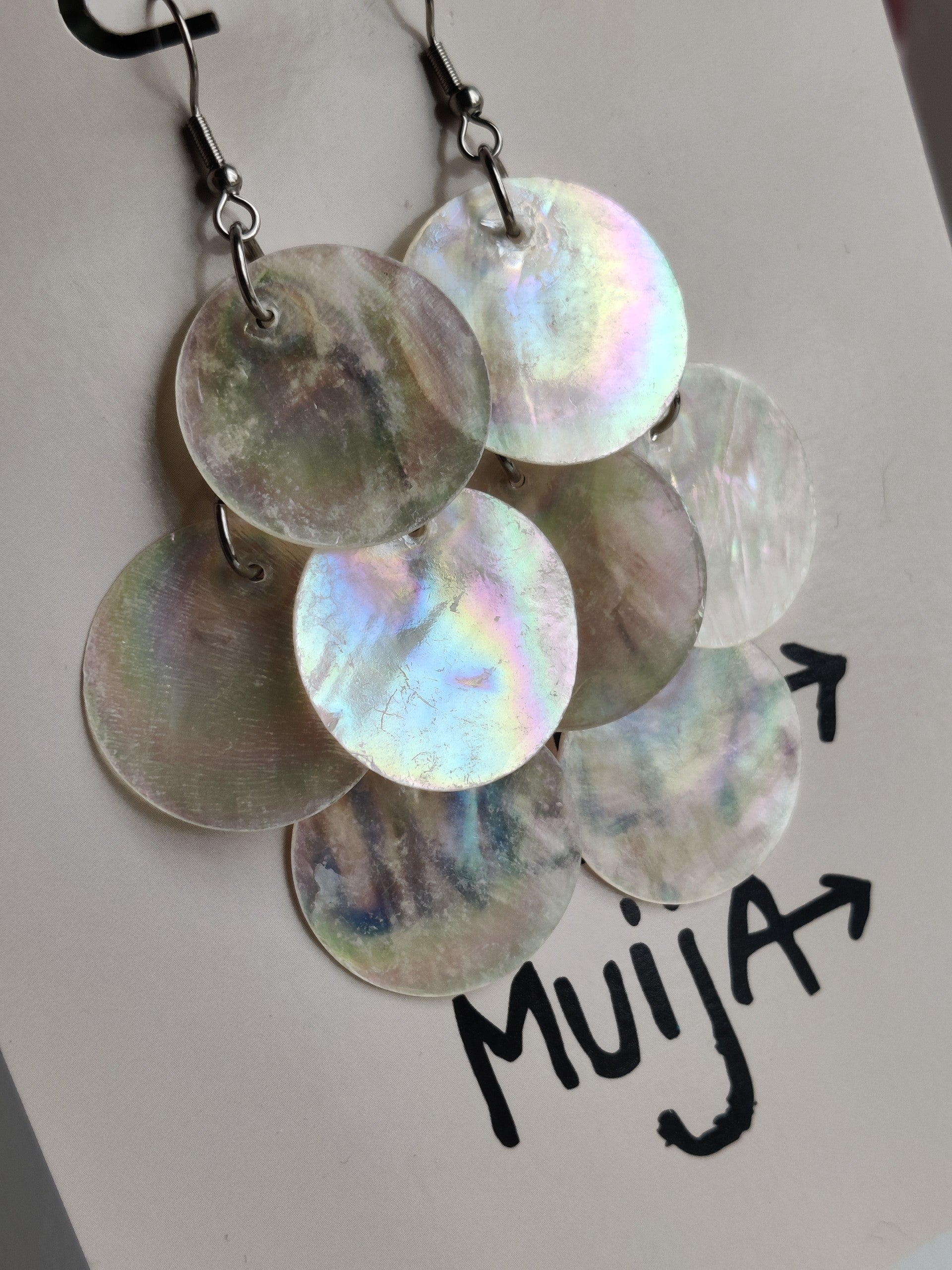 Ihanat simpukankuorikorut jotka hohtavat hempeästi sateenkaaren eri sävyjä. Paras asuste kesäjuhliin ja festareille.