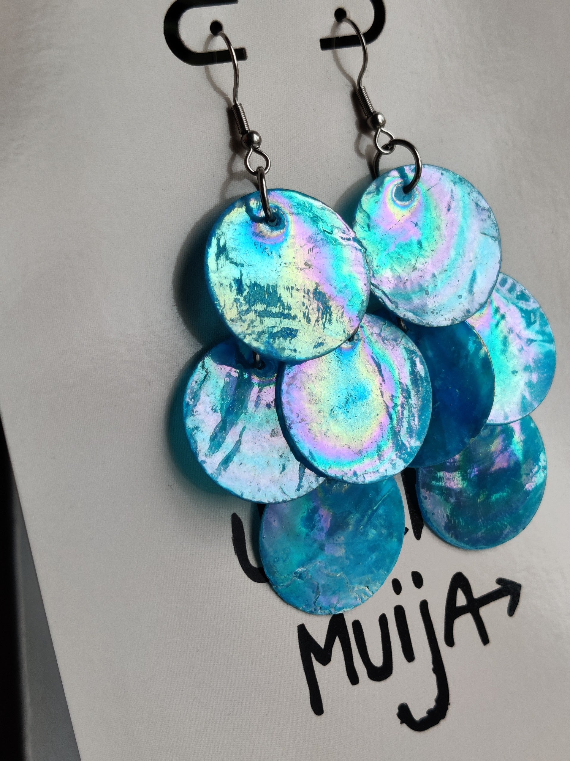 Ihanat simpukankuorikorut jotka hohtavat hempeästi sateenkaaren eri sävyjä. Paras asuste kesäjuhliin ja festareille.