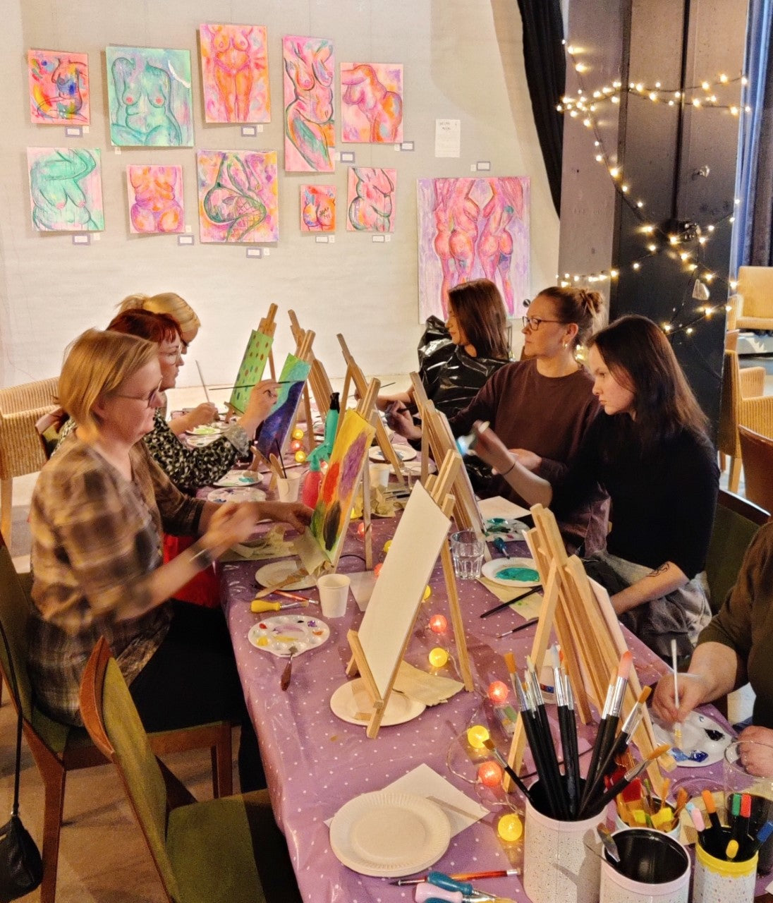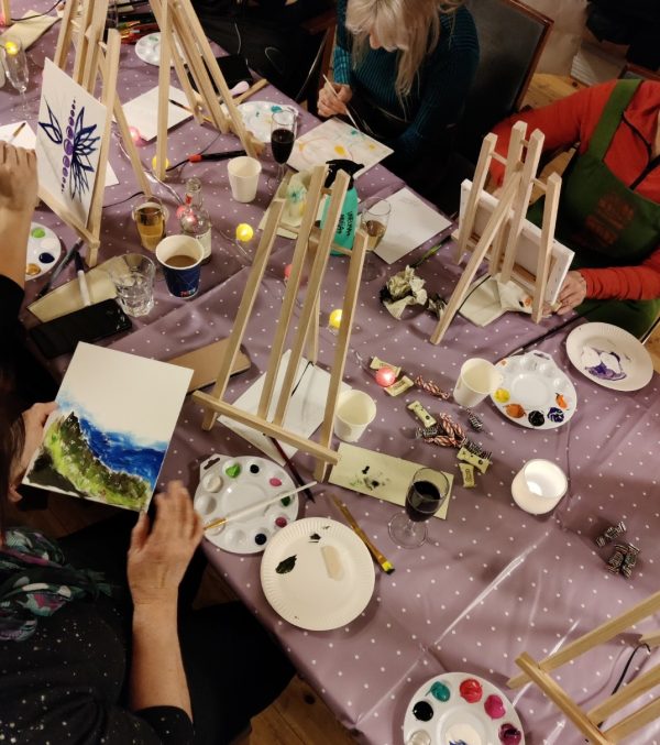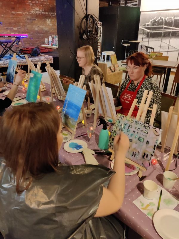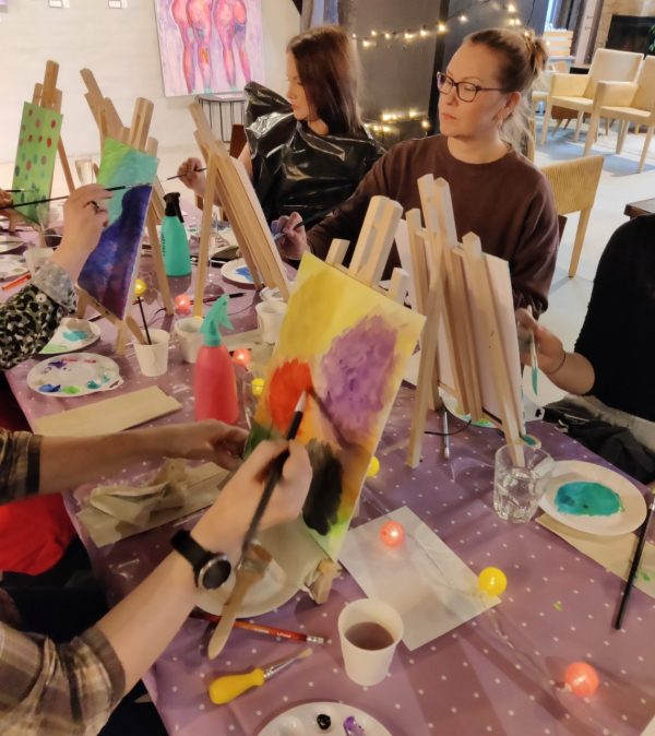 Jokainen saa rennon hetken itselleen ja pääsee heittämään sisäisen kriitikkonsa syrjään. Luodaan juuri omannäköinen SOPIVASTI IHANA teos. Kaikki tarvikkeet ja ohjaus kuuluu hintaan. Tarvittaessa myös tila järjestyy mikäli sinulla ei ole omaa mielessä. Luvassa on naurua ja rento, salliva ilmapiiri.